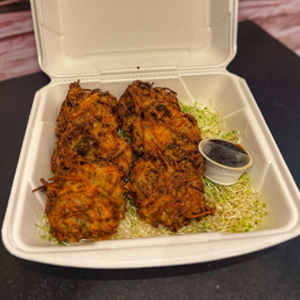 Rolinho primavera com recheio de carne bovina, acompanha molho do chef.