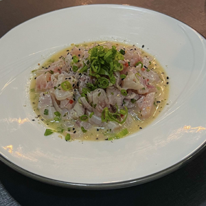 Cubos de tilápia, cebola roxa, pimenta dedo de moça, salsinha picada e um delicioso molho especial do chef.