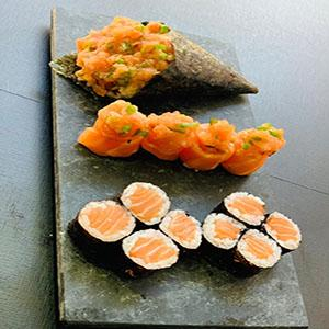 3 Sashimis de salmão, 4 Uramakis Filadelfia, 2 Hossomakis de salmão, 2 Gunkan Jhow e 4 Hot Filadélfia.