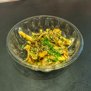 Cogumelo shimeji salteado na manteiga com tempero do chef e finalizado com tempero verde.